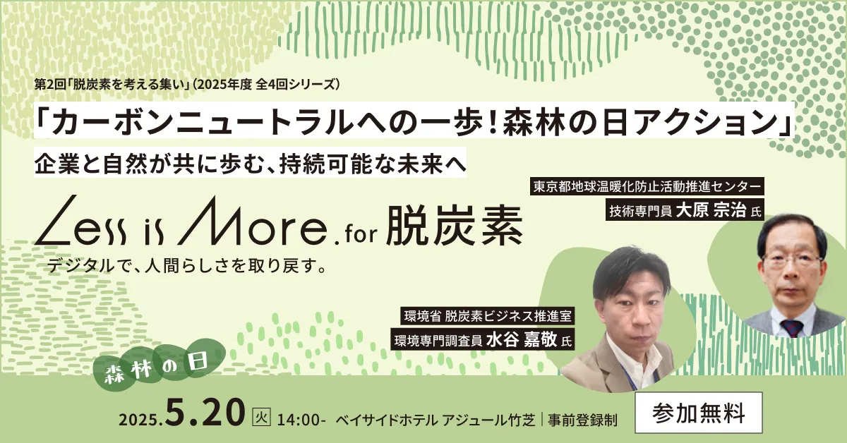 「Less is More. for 脱炭素」は、デジタル技術がどのように企業の競争力強化と脱炭素の取り組みを結びつけるのかを考える機会です。特に今年は、「森林の日」に合わせて企業と自然の共生についても深く掘り下げます。これは、持続可能な社会の構築への第一歩とされており、地域社会における意識の向上へも貢献すると期待されます。