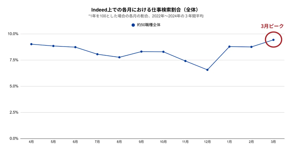 世界最大級の求人サイト「Indeed」は、日本市場において仕事探しが活発になる時期を分析しました。この調査は、2022年から2024年のデータを元に行われ、約50の職業に対する求職者の検索傾向を明らかにしました。