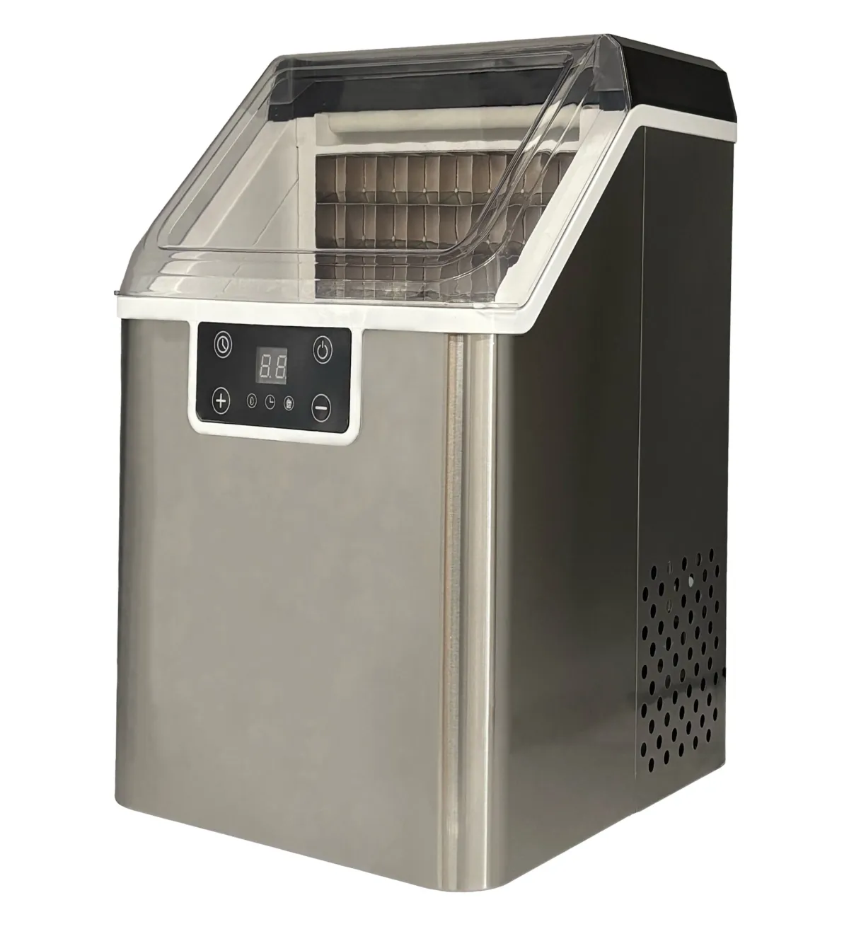 この製氷機は非常に使いやすく設計されており、本体の水タンクに水道水を注ぎ入れるだけで製氷が開始されます。その後、水パイプから水が流れ込み、冷却部分を通過することで氷が形成され、最後にはバスケットに氷が落ちる仕組みです。わずか15〜20分で、必要なタイミングに合わせて氷が生成されます。