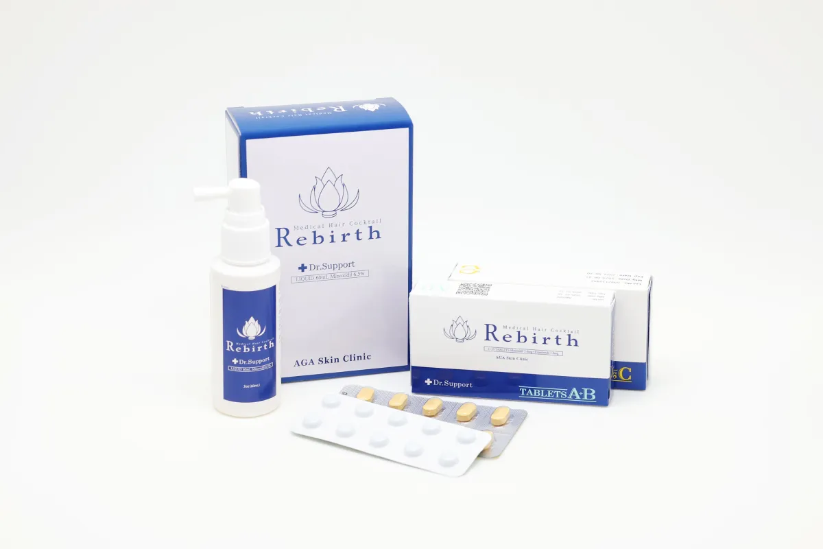 『Rebirth A+B』は、ミノキシジル5mgとフィナステリド1mgを組み合わせた画期的な発毛薬です。従来、AGA治療では、これら2種の薬を別々に服用する必要がありましたが、この新商品では1錠で手軽に服用できるようになりました。これにより、服薬の負担が大幅に軽減されたと多くの患者様からの高い評価を受けています。
