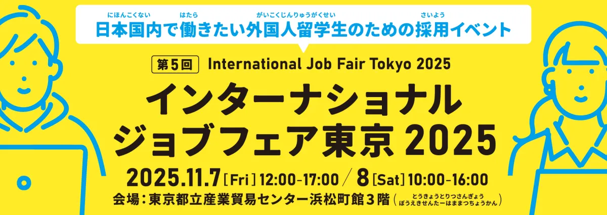 2025年11月7日(金)と8日(土)、東京都立産業貿易センター浜松町館にて、第5回となるインターナショナルジョブフェア東京が開催されます。このイベントは、外国人での就職を希望する方々と、外国人材を求める企業とのマッチングを目的とした展示会です。