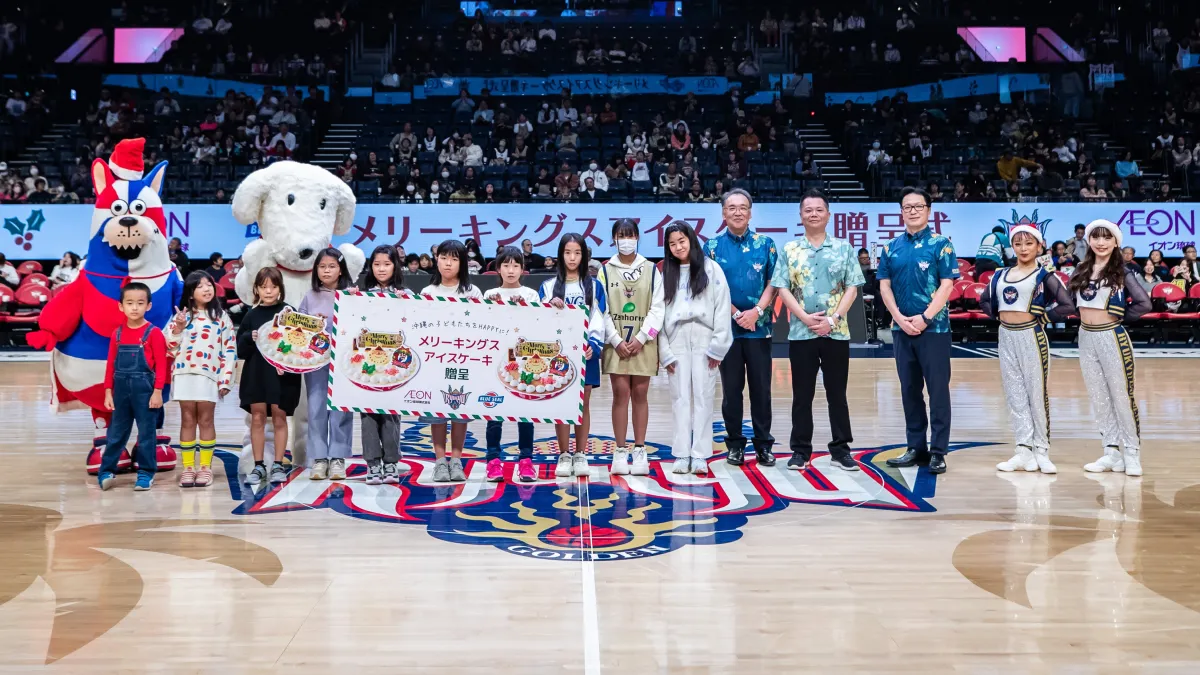 琉球ゴールデンキングスが、オフィシャルパートナーであるイオン琉球株式会社および、フォーモストブルーシール株式会社と連携し、子どもたちをHAPPYにするクリスマスのプロジェクトを実施します。このコラボレーションの一環として、沖縄県内の“こどもの居場所”に、クリスマス用のアイスケーキが寄付されることが決まりました。