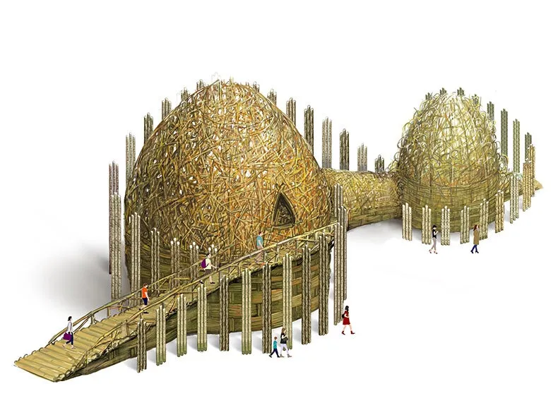 台湾出身のアーティスト、ワン・ウェンチー氏は、巨大な竹の建築物を制作することで国際的に知られています。彼の過去の作品には、瀬戸内国際芸術祭や水と土の芸術祭などがあります。今回は、アドベンチャーワールドでの出会いがきっかけとなり、竹を使った「Glimmering Hill」(きらめく丘)という作品を手がけることになりました。この作品は、自然と人間のつながり、竹が育む多様性の象徴として位置づけられています。