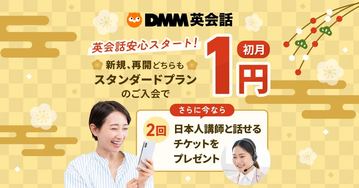 合同会社DMM.comが運営するオンライン英会話サービス「DMM英会話」は、2025年1月1日から1月20日の期間中に特別キャンペーンを実施します。新規または再入会でスタンダードプランの初月月額料金がなんとたったの1円になります。この期間中は、さらに日本人講師と話すためのチケットも2回分プレゼントされるため、英会話初心者にも絶好のスタートを切るチャンスです。