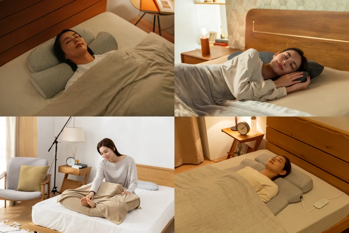 CALQSの「ホッとする枕」シリーズは、ユーザーからのフィードバックを基に、着実に改善と拡大を遂げてきました。最初に発売された枕は、首と肩を温めることで、カラダのだるさを和らげ、「朝が軽く感じるようになった」という声が多く寄せられました。その結果、シリーズは多様化し、首・肩だけでなく、肩甲骨、腰、さらにはふくらはぎまで、幅広い部位をサポートするアイテムが加わりました。