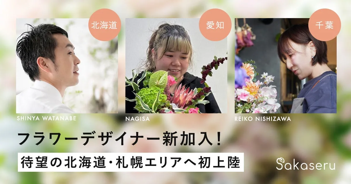 Sakaseruが、北海道・愛知・千葉の新たなフラワーデザイナーを迎え、全国各地へのサービスを強化しています。昨今の需要の高まりに応じ、特に北海道・札幌に新しい存在を加えたことで、これまで対応が難しかった地域へのお届けも可能となりました。