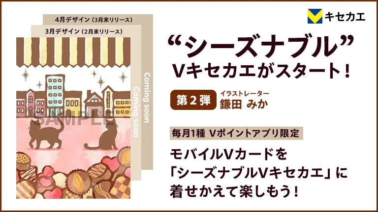 Vキセカエの新たな『シーズナブルデザイン』を通じて、鎌田みかさんの世界に触れてみてはいかがでしょうか。日々の生活にちょっとした彩りや楽しみを加え、Vポイントがより身近な存在となることを期待しています!