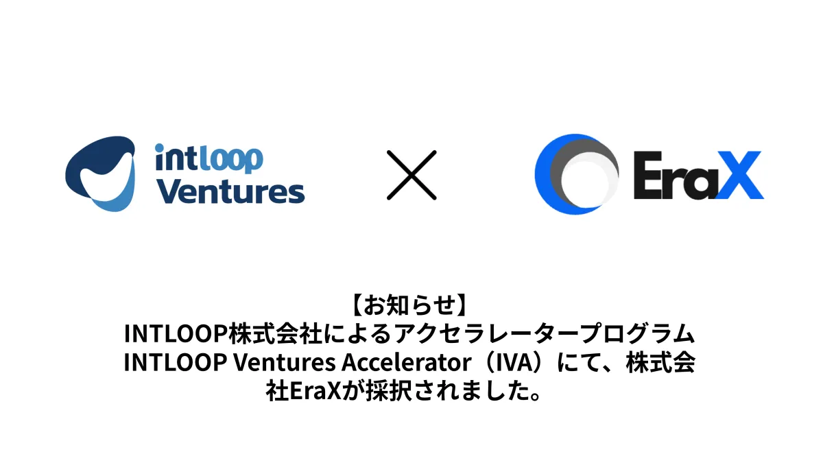 株式会社EraX(本社:東京都港区)は、INTLOOP株式会社が主催する「INTLOOP Ventures Accelerator(IVA)」プログラムに選出されました。約40社の応募の中で、あらたに挑戦を受けることとなった7社の中に名を連ねたことは、同社にとって大きなステップとなります。