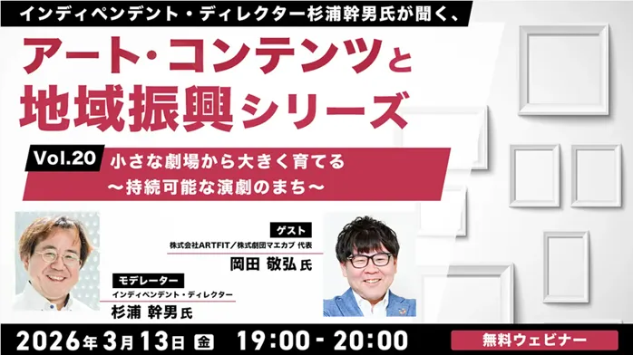 株式会社クリーク・アンド・リバー社は、3月13日(金)に無料のオンラインセミナーを開催します。このセミナーは「持続可能な演劇のまち」をテーマに、アートやコンテンツを通じた地域振興の可能性について考察するものです。