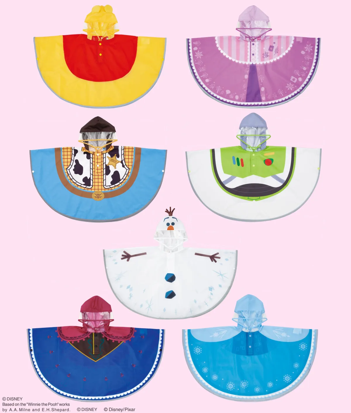 このレインポンチョは、『トイ・ストーリー』のウッディやバズ、『アナと雪の女王』のアナやエルサ、『塔の上のラプンツェル』のラプンツェル、そして『くまのプーさん』のプーさんなど、子供たちが大好きなキャラクターの衣装を忠実に再現。単なる雨具ではなく、お気に入りのコスチューム感覚で身に付けられます。これにより、子供たちはレインコートに対する苦手意識を持たず、むしろ自ら進んで着たくなるでしょう。