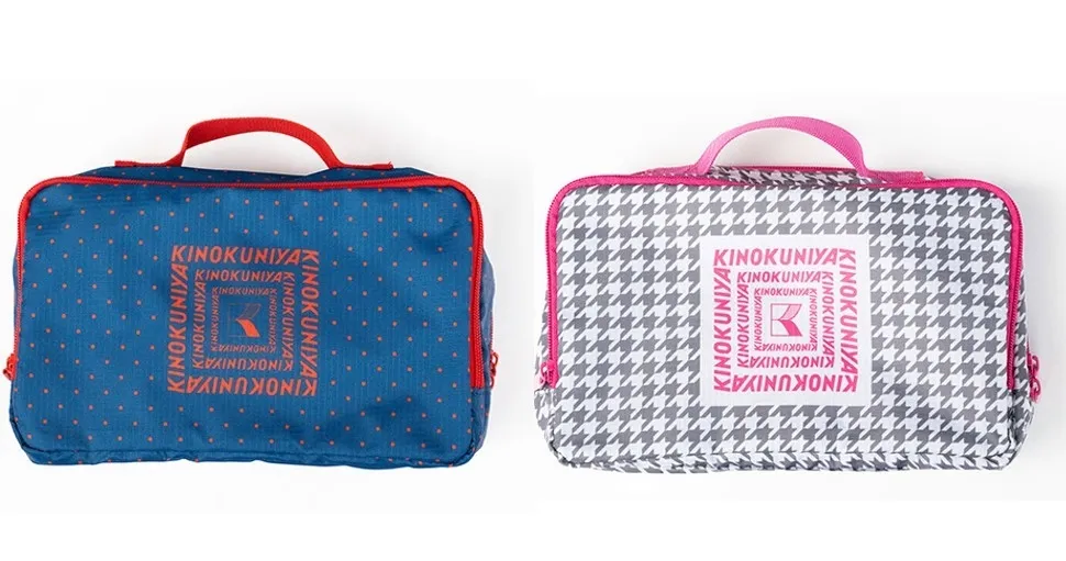 「KINOKUNIYAセパレート便利ポーチ」は、個性的な2つのデザインから選べます。まずはネイビー地に赤い持ち手とドット柄が施された「ドット」と、グレーの千鳥格子柄にビビッドなピンクが映える「チェック」です。特に「チェック」は、セブンネットショッピングとセブン-イレブン限定のバージョンとして登場し、他にはないオリジナルの魅力を放っています。