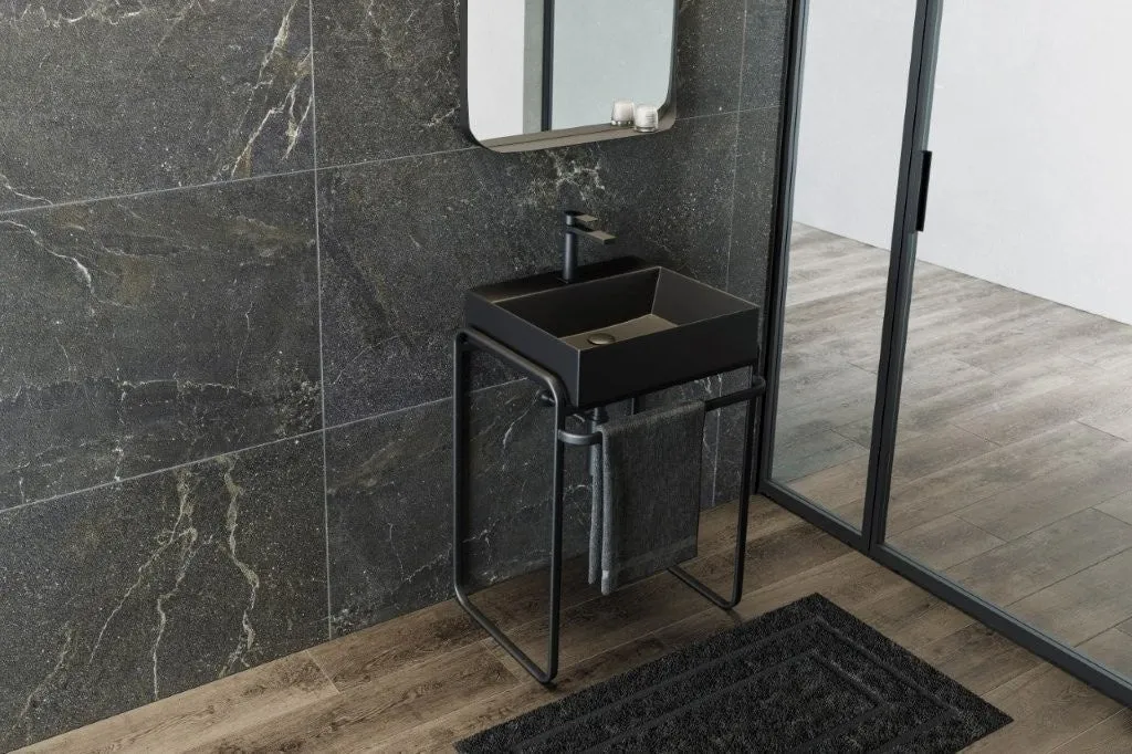 新たに登場する《エレガンスフレーム洗面》は、スチールパイプ製のフレームと洗面ボウルを組み合わせたステイリッシュなセット。フレームは柔らかな丸みを持たせることで、スチール特有の堅苦しさをなくし、より優しい印象を与えます。その下部にはタオル掛け機能も備わっており、洗面スペースを最大限に活用できる設計となっています。色展開としては、スタンダードなブラック・ホワイトに加え、今季の流行色「アンバーゴールド」がラインアップされています。