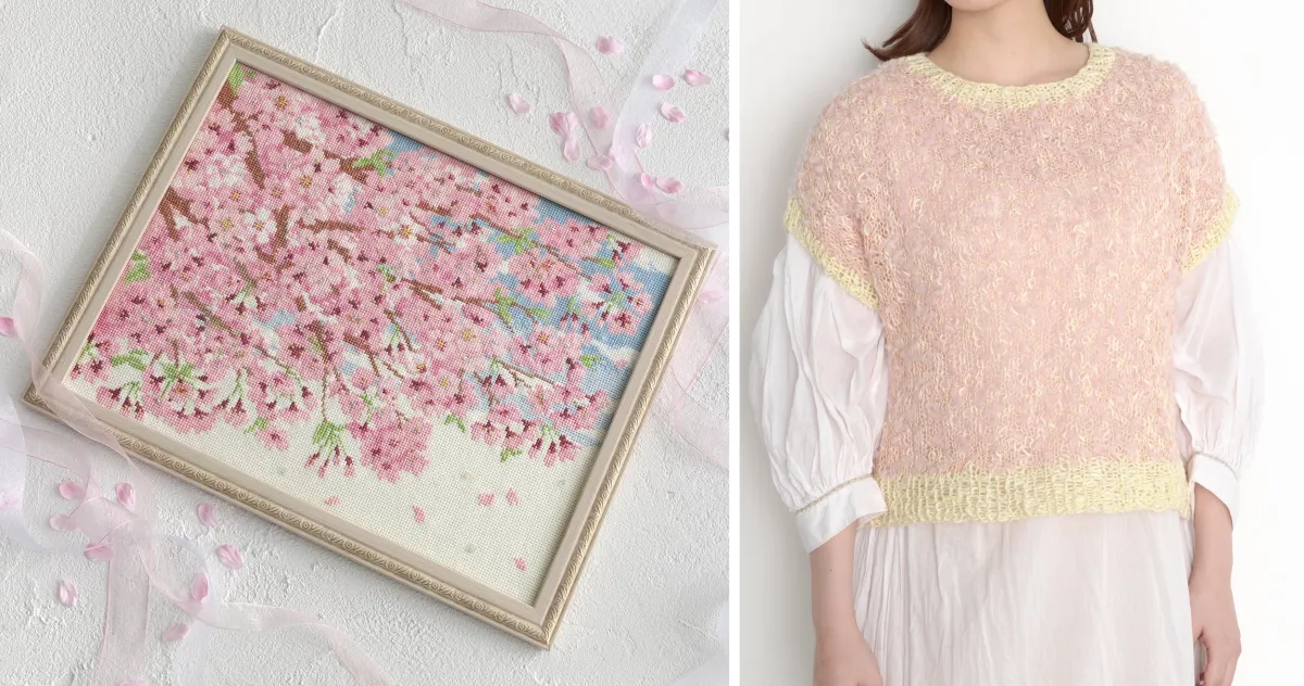 春風に舞う花びらを再現した、満開の桜をクロスステッチで楽しむキットが揃いました。キラキラとしたラメ糸やビーズを取り入れた刺繍キットが、光の反射による美しさを加えています。