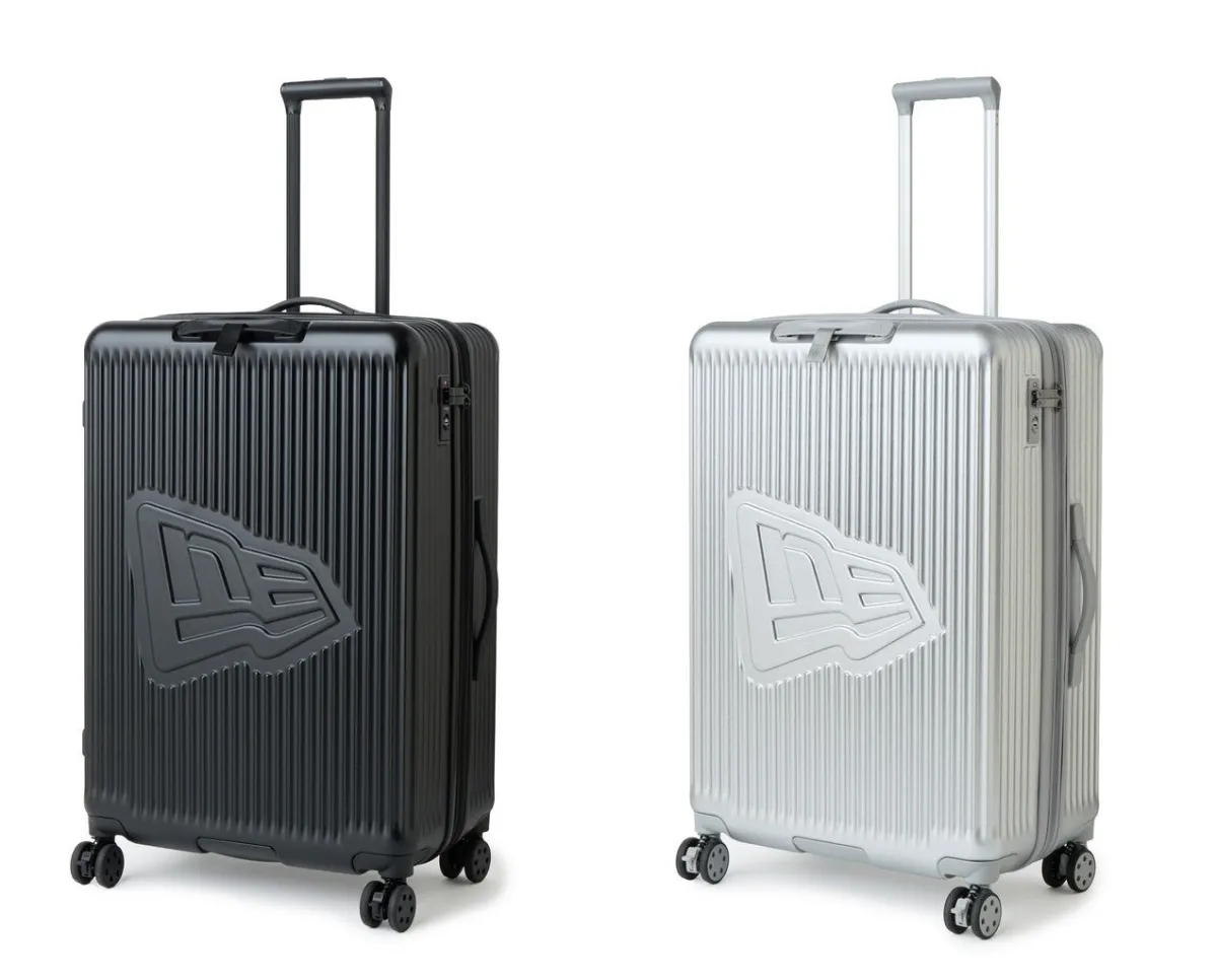 新しく登場したラージサイズのキャリーケースは、容量が92リットルから104リットルで、目安としては5~7泊分の荷物を収納できます。カラーは、申し分ないスタイルを演出する黒とシルバーの2色が展開されており、どちらもニューエラのフラッグロゴがエンボス加工で施されています。これにより、シンプルでありながらもスタイリッシュさが引き立つデザインとなっています。