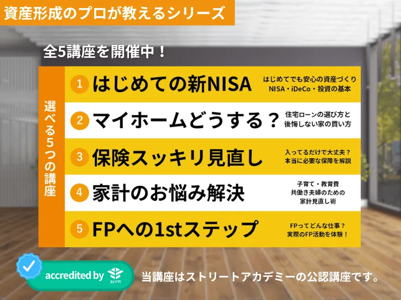 講座はお金の専門家によって運営されており、単に「教える」だけでなく、「ともに考える」スタイルを取り入れています。これにより、受講者は自分のライフプランに合ったアドバイスを受け、自分自身の資産形成に役立てることが出来るのです。