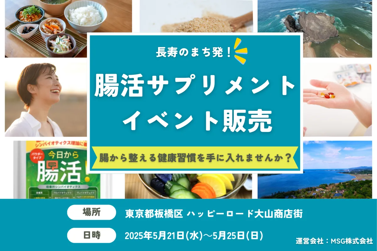 東京都板橋区で、2025年5月21日から5月25日までの5日間、「今日から腸活」として知られる腸活サプリメントの特別販売イベントが開催されます。このイベントは、MSG株式会社によって実施され、長寿を支える腸の健康をテーマに展開されます。