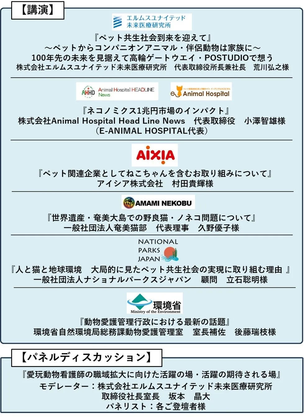 参加者は様々な視点から猫との関係性を深め、動物愛護の重要性を再認識することができます。全国に拡がる動物病院をつなぐメディアを運営する株式会社Animal Hospital HEADLINE Newsの小澤智雄代表取締役からも、ペット共生社会に向けた取り組みが紹介されます。