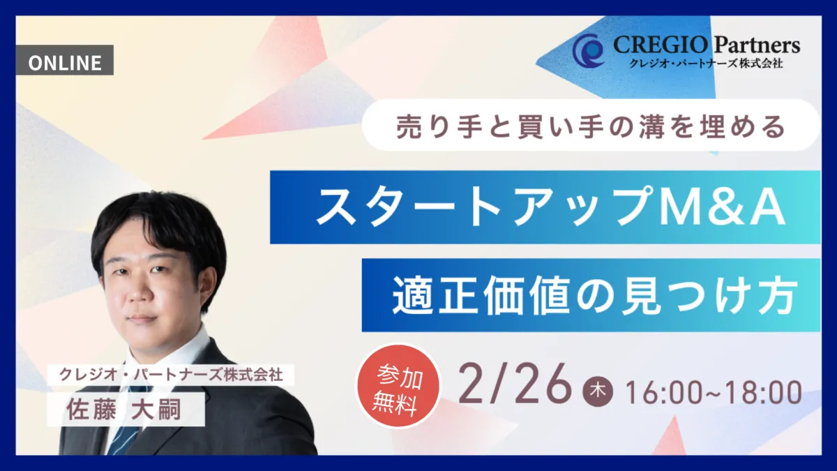 広島を拠点に活躍するM&Aアドバイザリー会社、クレジオ・パートナーズが2026年2月26日、スタートアップの企業価値評価をテーマにした無料のオンラインセミナーを開催します。このセミナーは、経営者や投資家にとって非常に重要なテーマである企業価値評価(バリュエーション)を体系的に理解するための貴重な機会です。