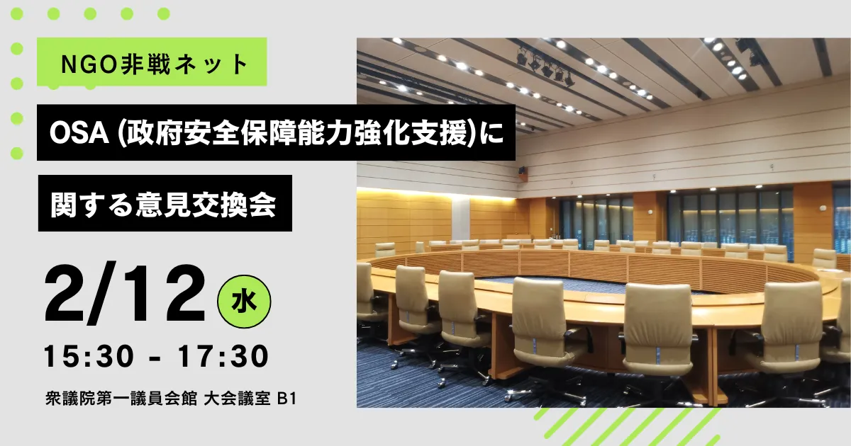 2025年2月12日(水)15時半より、衆議院第一議員会館でNGO非戦ネットによる意見交換会が行われます。このイベントは、日本の国際協力活動を行うNGOが連携し、特に国の安全保障政策に対する懸念を共有するための重要な機会です。