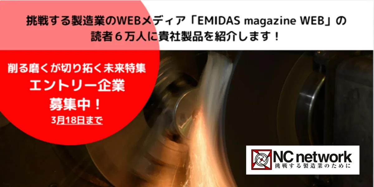 製造業向けの情報を発信する『EMIDAS magazine WEB』が、特集『削る磨くが切り拓く未来』のエントリー受付を開始しました。本特集は、数々の製造業企業の技術や製品を紹介し、新しい顧客開拓の機会を提供することを目指しています。特集の内容には、切削加工や研削加工、関連する工具や工作機械、デジタル技術に至るまで、多岐にわたる情報が含まれます。