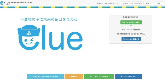 「Clue」は、不登校生やその家族を対象としたマッチングサイトです。ここでは、同じような経験を持つ人同士がつながることができ、悩みを共感し合える環境が提供されています。子どもたちが抱える思いについて知らないままでいる親にとっても、適切な情報や支援が得られる場となっています。