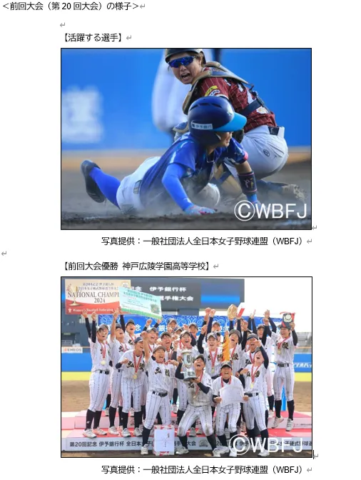 この大会には、高校、大学、クラブチームからの選手たちが参加し、熱い戦いが繰り広げられます。特に高等学校選抜大会上位4校、大学選手権大会上位6校や選考で選ばれたチーム、さらにクラブ選手権ベスト4チームなど、各カテゴリーからの精鋭たちが争います。観戦者は、球場で直接観戦することもできますし、試合はWBFJ公式のYouTubeチャンネル「MADONNA JAPAN TV」からもライブ配信される予定です。