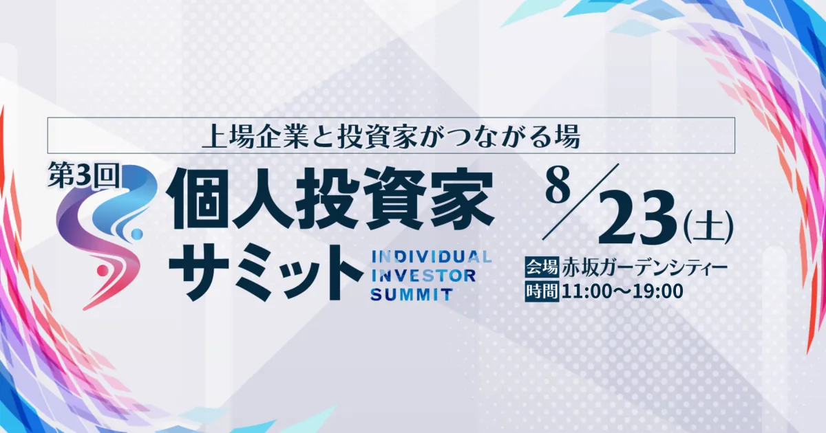 2025年8月23日(土)、赤坂ガーデンシティで、待望の第3回個人投資家サミットが開催されます。このイベントは、個人投資家と上場企業との対話に重きを置いた特別なIRイベントです。