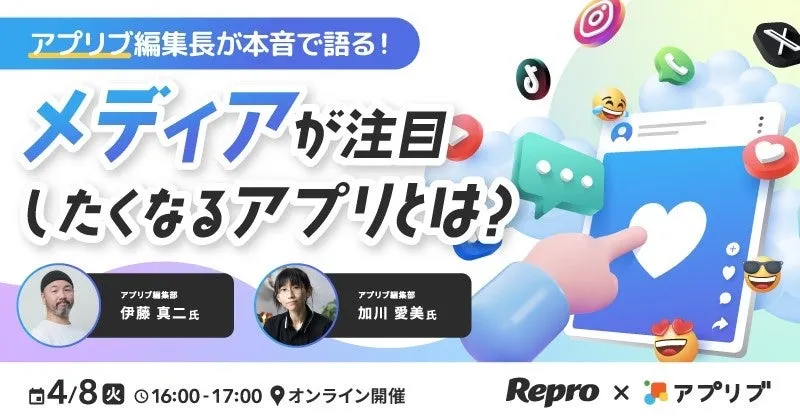 ナイル株式会社が展開するスマートフォン向けアプリ紹介メディア「アプリブ」が、Repro株式会社と共にウェビナーを開催することを発表しました。イベントは2025年4月8日(火)16:00からオンラインで行われ、参加は無料です。デジタル時代において、アプリのPRやマーケティングは企業にとって欠かせない要素となっていますが、その中でも特にメディアに取り上げられることの重要性が増しています。