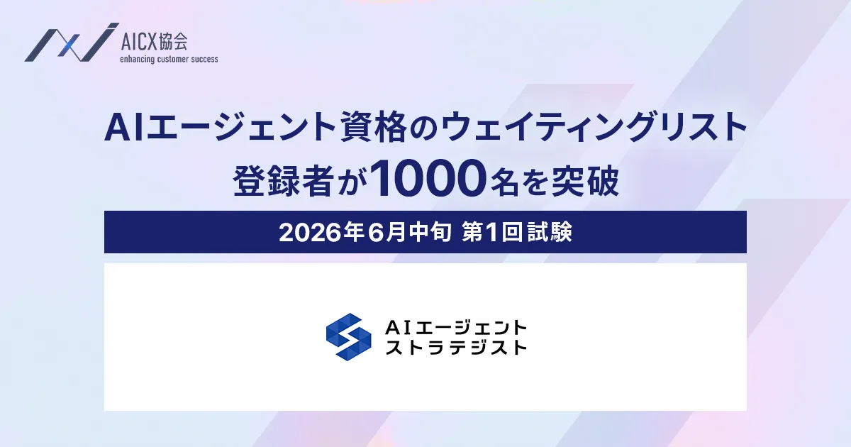 一般社団法人AICX協会は、2026年2月に創設した「AIエージェント・ストラテジスト」という資格のウェイティングリスト登録者数が、3月17日までに1,000件を超えたことを発表しました。近年、生成AIの活用が進む中で、AIエージェントに対する専門的な人材の育成が急務とされています。