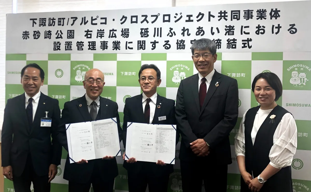 2025年5月29日、長野県の下諏訪町役場において、アルピコリゾート&ライフ株式会社と株式会社クロスプロジェクトグループからなる「アルピコ・クロスプロジェクト共同事業体」が下諏訪町と協定を締結しました。この協定により、赤砂崎公園の湖畔エリアに複合施設「SUWA Cominal(スワコミナル・仮称)」を整備する計画が始動します。
