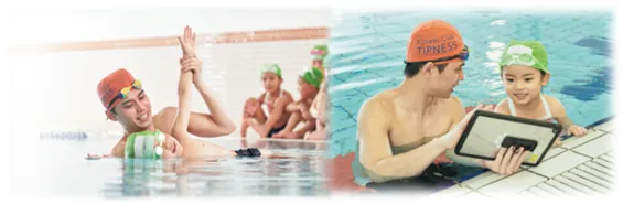 さらに、ティップネスのスイミングスクールでは「スタディスイム」というサービスを採用。タブレット端末を使用し、自分の泳ぎを客観的に見ることで、主体的に学ぶ力が養われます。考え、試し、伸びるという好循環が生まれ、子どものやる気を引き出します。