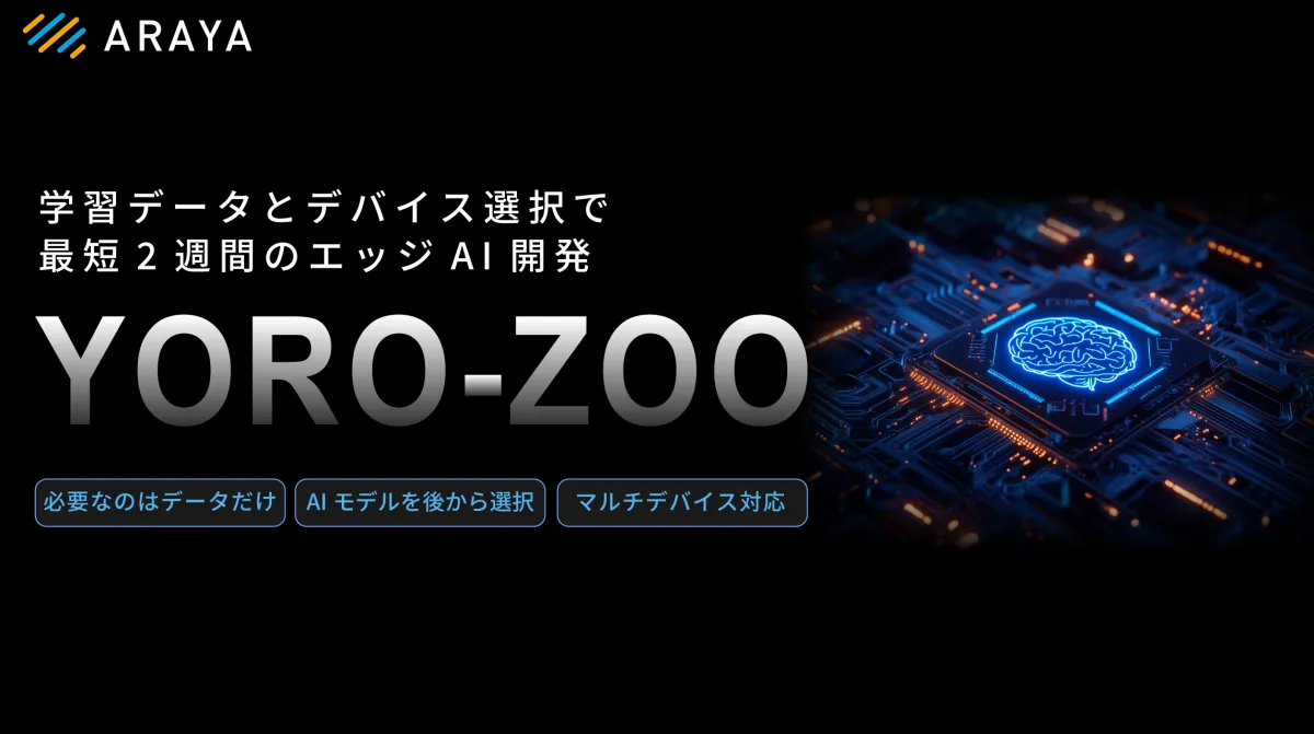 株式会社アラヤが2025年4月から提供する新サービス「YORO-ZOO」は、エッジAIデバイスを短期間でセットアップした状態でお届けします。このサービスは、企業が学習用データを提供することで、必要なAIモデルを選び、迅速にデバイスを受け取ることが可能です。これによって、エッジAIの実装のハードルが大幅に下がります。