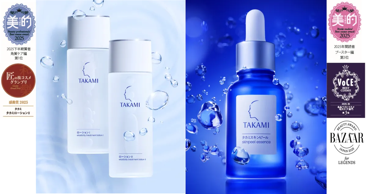 東京・表参道で美容皮膚科クリニックを運営するタカミは、20万人以上の肌と向き合った経験をもとにスキンケアブランドを展開しています。このブランドから新たに登場した「タカミローションⅠ・Ⅱ」は、わずか2か月でシリーズ累計ベストコスメ9冠を受賞し、その実力を証明しています。