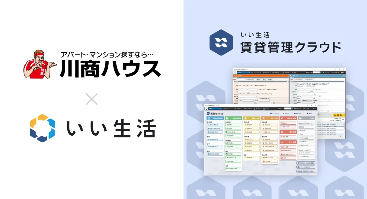 1975年に設立された川商ハウスは、地域に密着した不動産サービスを展開しており、地元のお客様との信頼関係を築いてきました。しかし、社内で開発・運用していた賃貸管理システムには、サイバー攻撃への対策や事業継続性(BCP)の確保といった課題がありました。そこで、川商ハウスは自社のシステム運用から脱却し、いい生活の賃貸管理クラウドの導入を決めました。