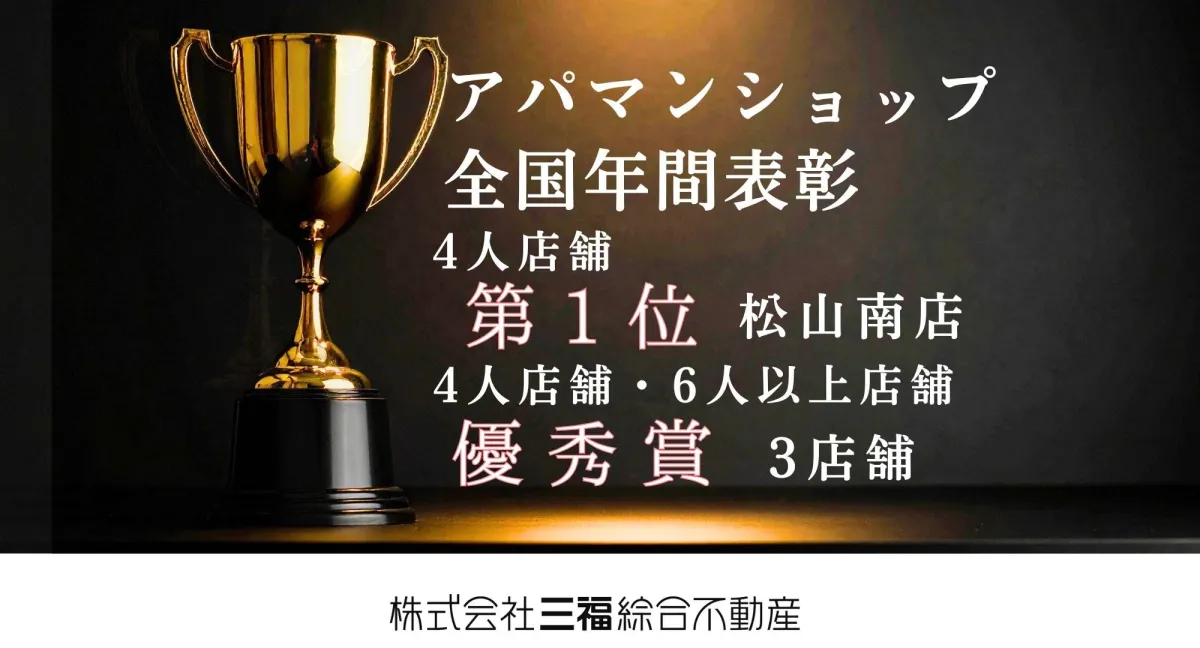 - - 年間契約件数4人店舗第1位: アパマンショップ松山南店