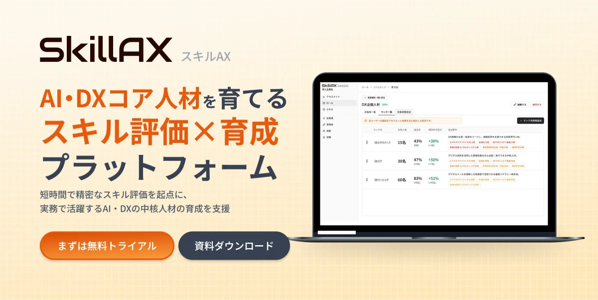 AIとDX技術が急速に進化する中、企業の人材育成と評価の在り方も進化が求められています。「SkillAX」は、従業員が持つスキルをデータで可視化し、評価と育成を一体化したことで、企業の成長を支える強力なプラットフォームとして注目されています。企業における人的資本の活用を推進し、次世代の人材管理に新たな風を吹き込むSkillAX。今後の展開に期待が高まります。また、無料トライアルも用意されているため、気軽にその実力を体験してみてはいかがでしょうか。