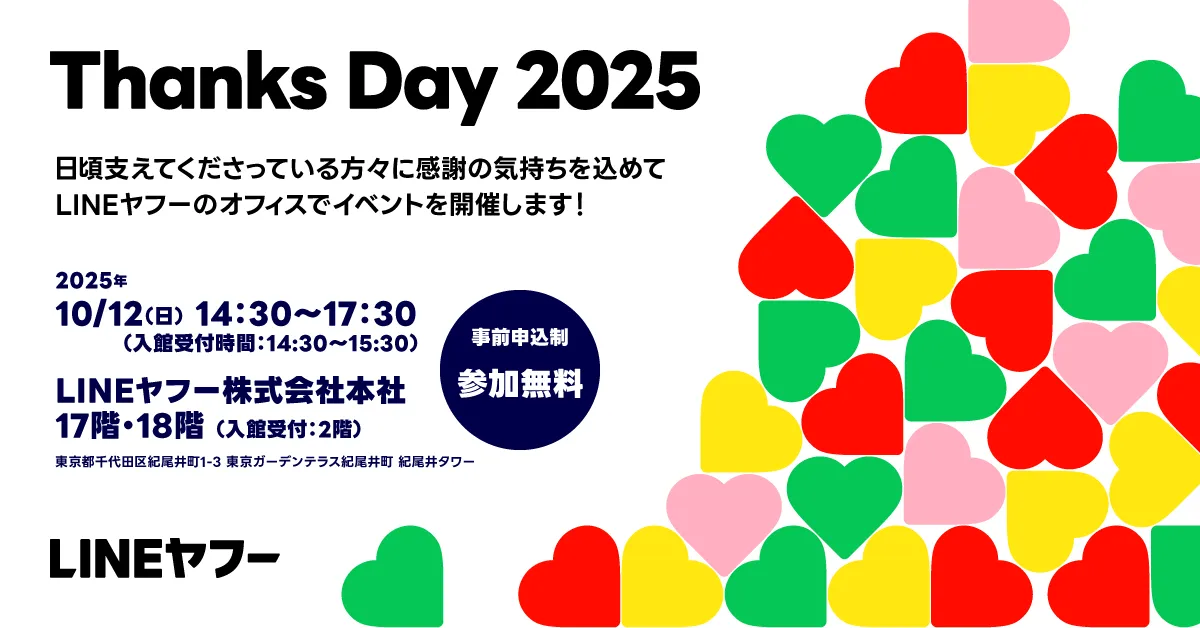 LINEヤフー株式会社が2025年10月11日(土)・12日(日)の2日間、日頃から支えてくれる人々へ感謝の気持ちを込めて「LINEヤフー Thanks Day 2025」を開催します。このイベントは、社員の家族や友人、そして何よりも「LINE」と「Yahoo! JAPAN」のサービスを利用しているユーザーのために用意された特別な場です。特に、10月12日(日)には一般参加者の募集が開始され、多くの方々に楽しんでもらえるチャンスがあります。