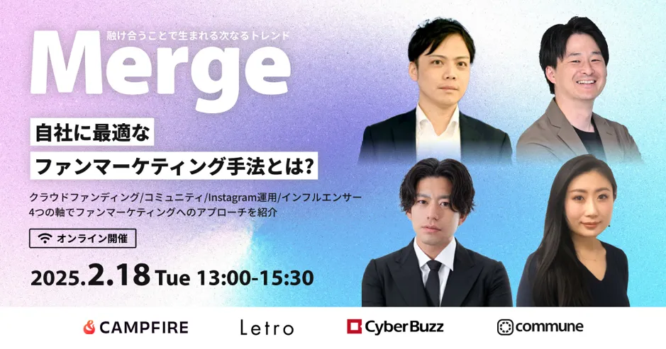 コミューン株式会社が、2025年2月18日(火)にオンラインカンファレンス「Merge」を実施します。このイベントは、現代のビジネスにおいて重要なファンマーケティング戦略を考察するための集いです。直接的な顧客との関係構築が求められる時代において、効果的な手法を学び、生かすための貴重な機会です。