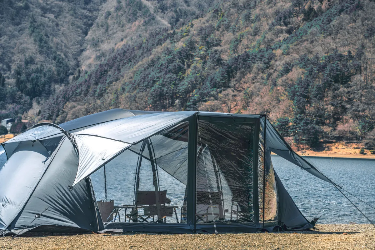特に寒い季節や風が強い場合でも、テント内部からの出入りがしやすい設計です。メインパネルの開閉が可能なため、急な天候の変化にも柔軟に対応できます。また、テント内のスペースが大幅に拡張されているため、大型のテーブルやチェアを設置しても余裕を持った動きが可能です。