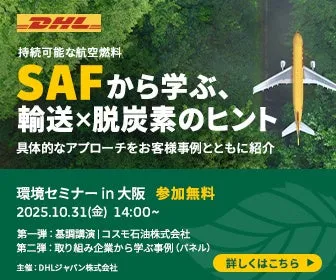DHLジャパン株式会社は、2025年10月31日(金)に法人向けの「DHLサステナブルロジスティクス環境セミナー2025」をホテル阪急インターナショナルで開催します。このセミナーは、急速に進化する航空物流の世界において、カーボンニュートラルを達成するための鍵となる持続可能な航空燃料(SAF)に重点を置いた内容になっています。