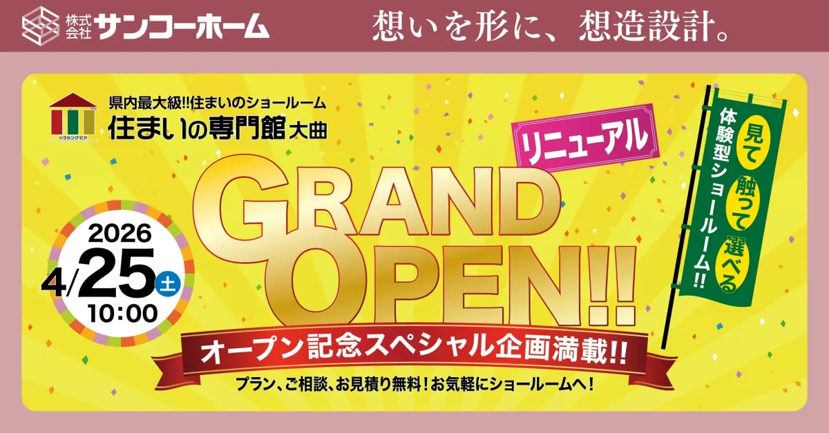 秋田県大仙市に位置する「住まいの専門館」は、地域の人々に愛されてきたショールームで、このたび10年の時を経て大規模なリニューアルを迎えます。新たに生まれ変わるこの施設は、2026年の4月25日(土)にオープンし、住まいの新しい形を提案する「体感型ショールーム」として、その姿を見せます。体感とテクノロジーを融合した新たなショールームによって、来場者は自らの理想像に具体的に触れることができるようになります。