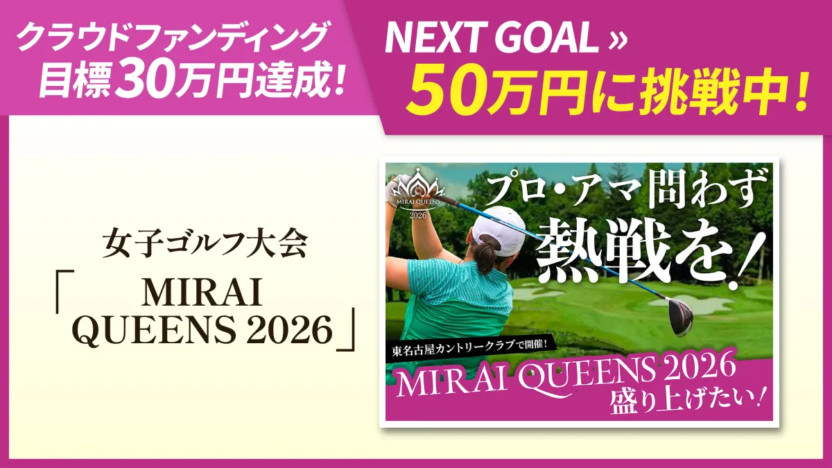 株式会社ファーストイノベーションが主催する女子ゴルフ大会「ゴムノイナキカップ 愛知レディスオープンゴルフトーナメント MIRAI QUEENS 2026」が、クラウドファンディングにおいて目標金額の30万円を達成したことを発表しました。続けて新たに掲げたネクストゴールは50万円。これを達成することで、より質の高い大会運営を目指します。