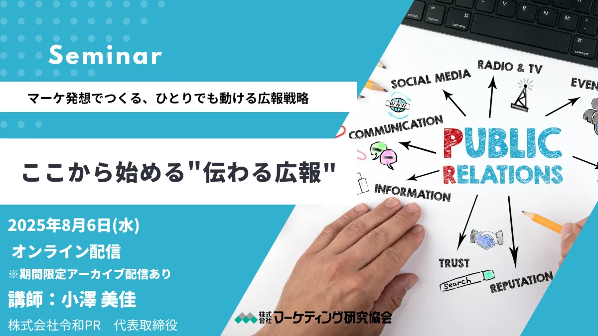 2025年8月6日に開催される「ここから始める『伝わる広報』オンラインセミナー」は、中堅BtoB企業を対象にした参加型の講座です。このセミナーでは、広報機能が未整備な企業が効果的に広報戦略を立ち上げるための具体的な手法を学ぶことができます。