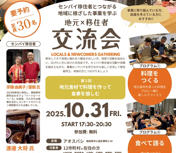この交流会は、移住した方々が地域に根付くための重要な機会です。先輩移住者の経験談をもとに、地域の活動や事業に関する知識を学びながら、楽しく交流できるプログラムです。特に第3回の交流会は、地元食材を使用した料理教室を兼ねており、南相馬市でカフェを経営する移住者夫妻がゲストに招かれます。