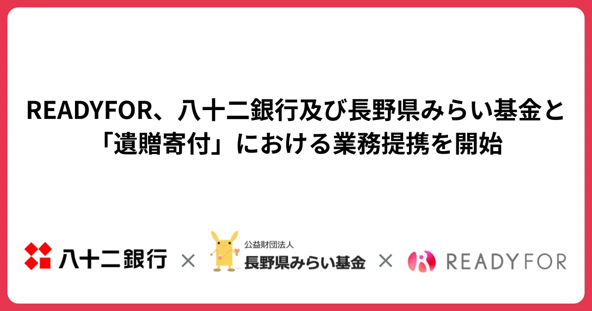 READYFOR株式会社は、八十二銀行および公益財団法人長野県みらい基金と手を結び、遺贈寄付分野における業務提携を開始しました。この取り組みは、遺贈寄付を希望する方々に多様なサポートを提供し、社会的な活動を活性化することを目指しています。