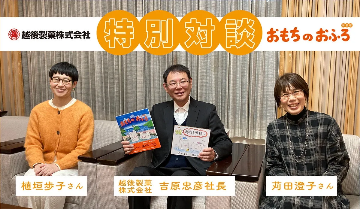 2025年1月7日、越後製菓株式会社の社長である吉原忠彦氏と絵本作家の苅田澄子さん、植垣歩子さんとの特別対談が公開されました。この対談は、2024年末に新装版が刊行される絵本『おもちのおふろ新装版』を記念して行われました。