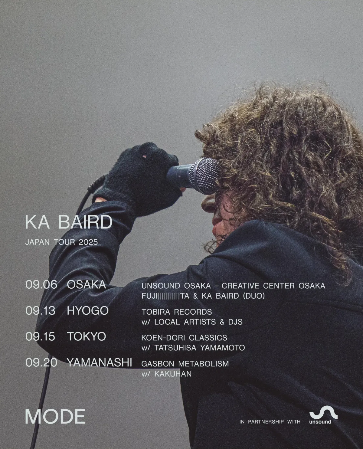 実験音楽やオーディオビジュアルの新たな可能性を切り開くアーティスト、カー・ベアードによる日本での初めてのツアーが発表されました。このツアーは、日本各地で彼の特異なライブパフォーマンスを体験できる貴重な機会です。パフォーマンスは、2025年9月6日から20日までの期間に、 大阪、兵庫、東京、山梨の4つの都市で行われます。