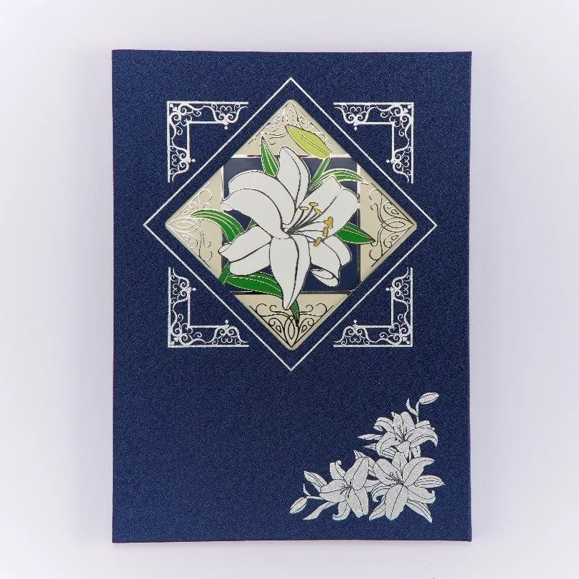 NTT東日本とNTT西日本が、2025年11月1日より新しい弔慰用電報台紙「慈しみ」を全国で提供します。高級感あふれる銀色の箔押しが施された台紙には、清らかな一輪の百合のデザインが印象深く描かれています。この商品は、葬儀や告別式、法事など、故人を偲ぶ場面での哀悼の意を表現するために最適と言えるでしょう。