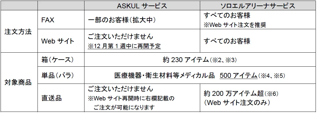 - - ASKULのウェブサイトでの注文受付が12月第1週中に再開予定。