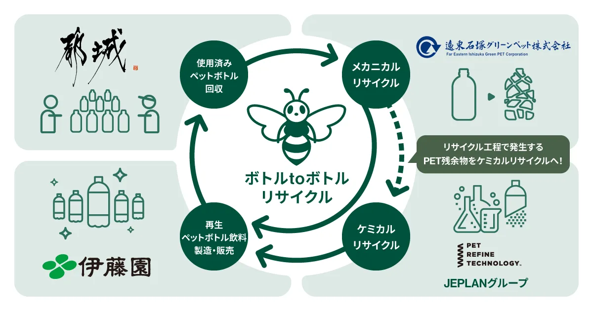 この新しい試みを通じて、JEPLANグループはPETボトルのリサイクルを進めるとともに、石油由来資源の消費を抑え、製造時に発生する温室効果ガスの排出を削減することを目指します。持続可能な社会の実現に向け、4社が協力し合う形で進行しているこのプロジェクトは、他の地域でもその成果が期待されます。